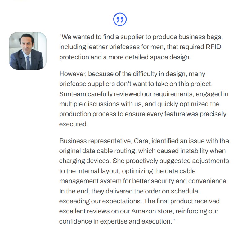 Sunteam specializes in manufacturing high-end leather briefcases for bag distributors, retailers, and enterprises, offering bespoke styles, durable materials, and innovative security features.