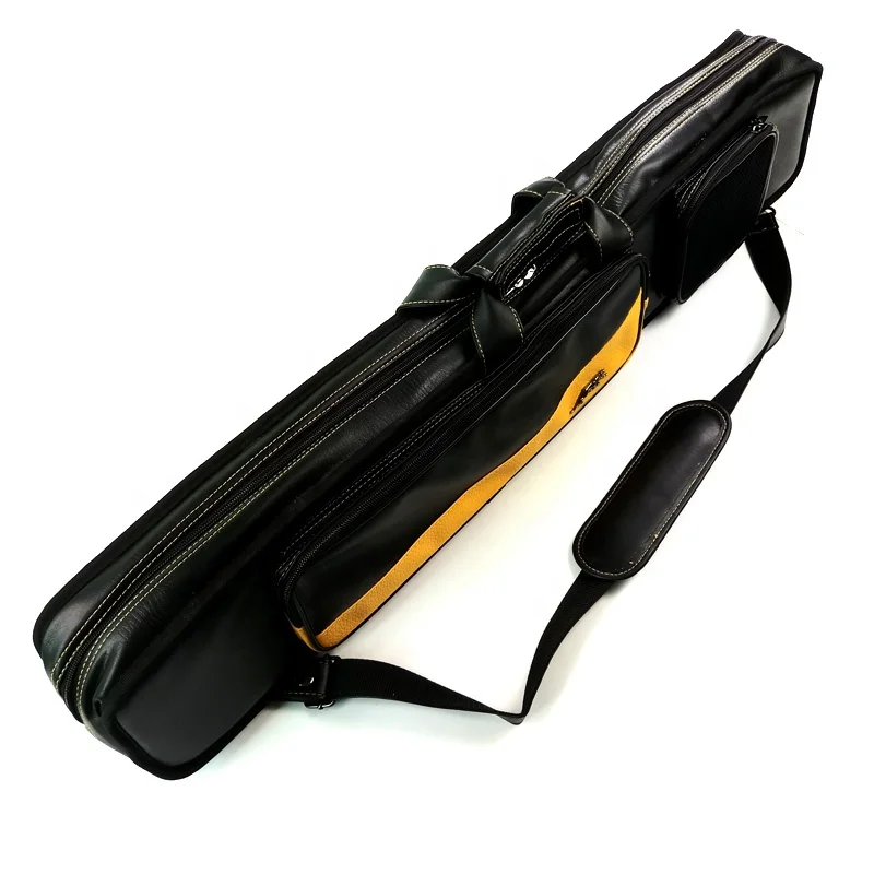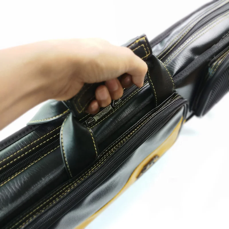 12holes=4B8S PU leather Billiards Pool cue cases high quality black with yellow design portable cue stick bags can customize