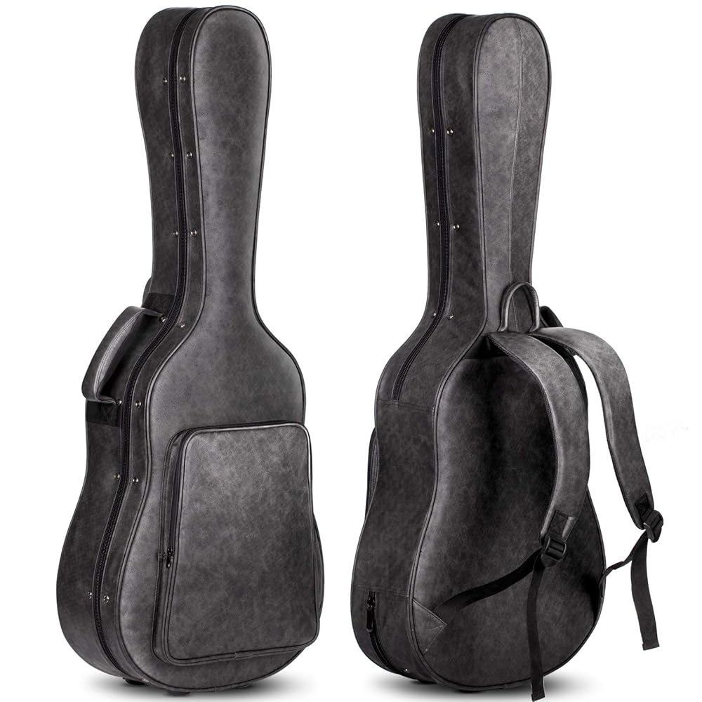 • Vintage Hardshell Semi-rigid Case: CAHAYA acoustic backpack soft padded hard shell guitar case is built for last. Foam shell as well as plush lining and metal zippers protect your beloved guitar from unexpected bumps. Featured vintage PU leather fabric with great texture, giving a sense of classy touch and easily to clean.